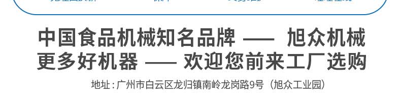廣州旭眾食品機(jī)械有限公司是一家集科研開(kāi)發(fā),生產(chǎn)設(shè)計(jì),營(yíng)銷(xiāo)服務(wù)為一體的現(xiàn)代化生產(chǎn)企業(yè)?,F(xiàn)代化生產(chǎn)車(chē)間,精湛制造技術(shù),所產(chǎn)機(jī)械歷經(jīng)市場(chǎng)重重考驗(yàn),不斷贏得海內(nèi)外客戶(hù)的贊譽(yù)。