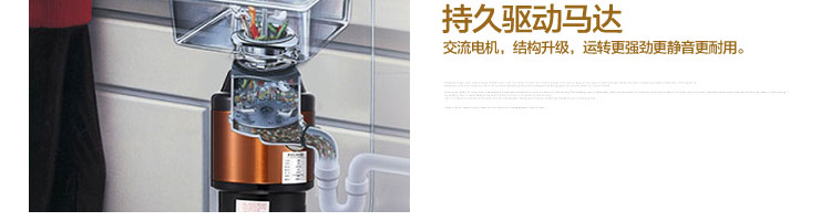 ACLQ75-廚房垃圾處理器,該機(jī)采用先進(jìn)的研磨系統(tǒng),采用特殊合金錘粉技術(shù),能根據(jù)垃圾的強(qiáng)度,自動(dòng)調(diào)節(jié)工作位置,處理垃圾的范圍和細(xì)度優(yōu)良,品質(zhì)性能穩(wěn)定性強(qiáng),產(chǎn)品暢銷多個(gè)國家和地區(qū),得到客戶的廣泛認(rèn)可。