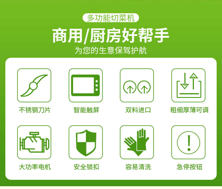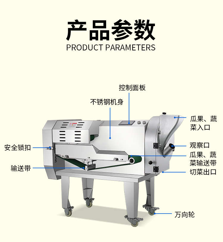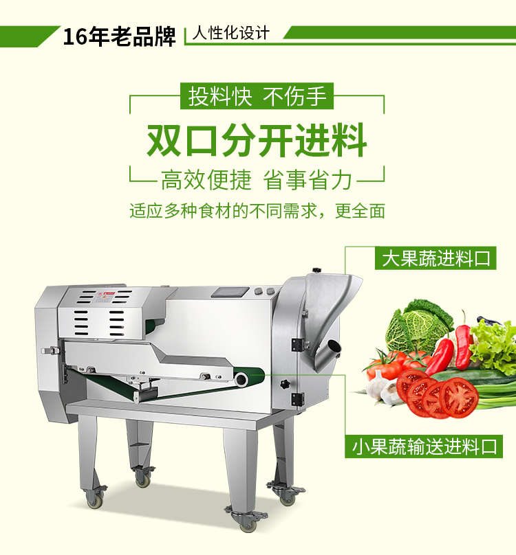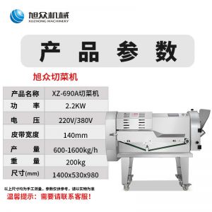 XZ-690A型多功能切菜機(jī),工作效率高,幫你省人工費。1小時可切600kg-1600kg/h,1臺機(jī)器等于多名廚師同時為您工作。一機(jī)多用,可切瓜果、蔬菜、藥材,刀片可進(jìn)行更換,設(shè)計周到,結(jié)構(gòu)合理,簡單輕松應(yīng)對。