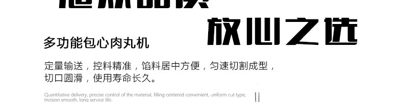 SZ-602包心肉丸機,可生產(chǎn)包心魚丸、包心豬肉丸、撒尿牛肉丸、爆汁小魚丸等多種球形醬湯類包餡產(chǎn)品。操控性強、穩(wěn)定性高、出品率穩(wěn)定;可抽皮增餡,做到皮薄餡多。