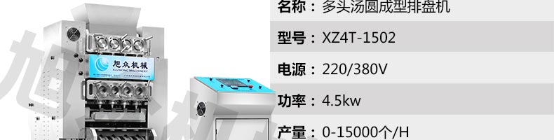 XZ4T-1501多功能搓圓擺盤機(jī)/湯圓機(jī),本機(jī)只要將面團(tuán)放入進(jìn)料口,開(kāi)機(jī)便可自動(dòng)搓圓、成型的設(shè)備,一次性成型四次產(chǎn)品,制品不易變形,工作效率高,相當(dāng)于15-20個(gè)工人同時(shí)手工制作湯圓,并可自動(dòng)排盤,真正的低投入、高收效、省錢省工。