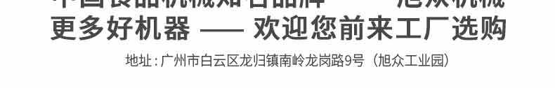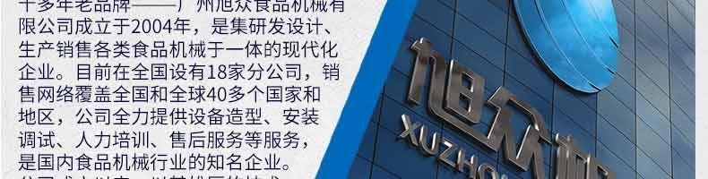 廣州旭眾食品機械有限公司是一家集科研開發(fā),生產(chǎn)設計,營銷服務為一體的現(xiàn)代化生產(chǎn)企業(yè)。現(xiàn)代化生產(chǎn)車間,精湛制造技術,所產(chǎn)機械歷經(jīng)市場重重考驗,不斷贏得海內外客戶的贊譽。